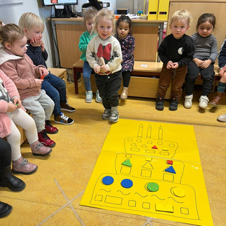 We leren vormen en kleuren kennen en versieren een grote TAART voor JULES!