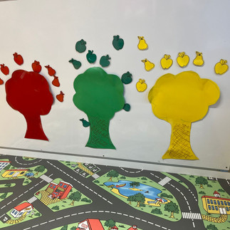 In alle hoekjes van de klas is het thema "Heerlijk herfstfruit" terug te vinden!