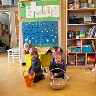 Ook in al de hoekjes van de klas vinden we het thema Pasen terug!