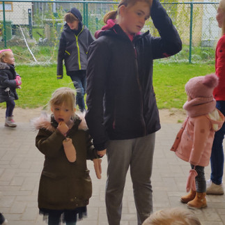 Nadien mochten we Paaseitjes rapen met het zesde leerjaar!