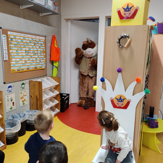 Kipje TOK kwam op bezoek in de klas, zij nam ons mee naar buiten! Samen met kipje tok gingen we naar het kippenhok!