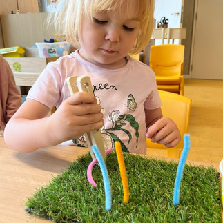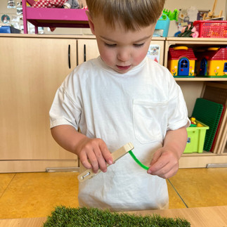 We mogen aan de slag gaan met papier en schaartjes en gaan gras knippen voor de kriebeldiertjes!